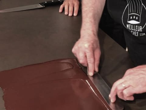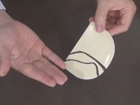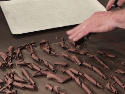 Затем соберите шоколад треугольной лопаткой так, чтобы получилась стружка. Если шоколад слишком мягкий, стружка не получится, а если будет слишком твердым, стружка будет ломаться.
