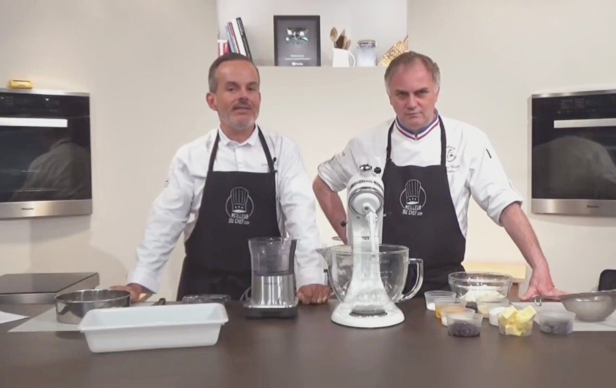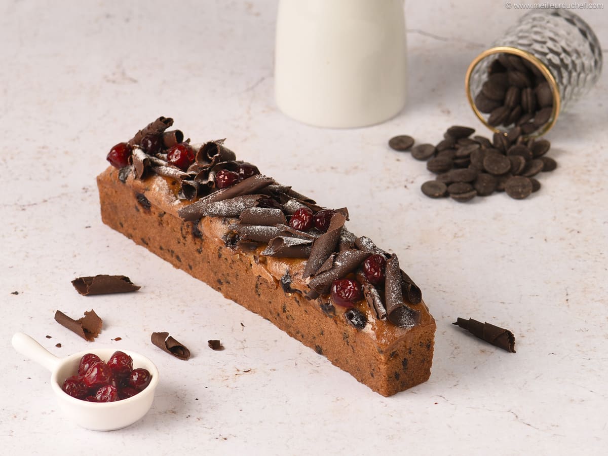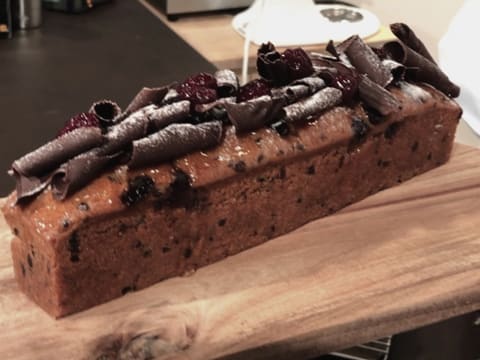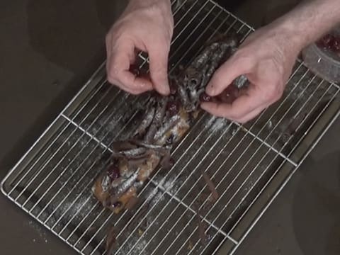 Завершите украшение первого кекса, слегка посыпав его легкой вуалью сахара Codineige и выложите сушеную вишню амарена между стружкой из темного шоколада.