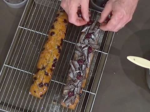 Дайте излишкам сиропа стечь с кекса и поместите его на решетку, установленную на блюдо, чтобы невпитавшийся сироп стекал на него. Сделайте то же самое со вторым кексом, стараясь не сломать его. Второй кекс также поместите на решетку, и оставьте остывать. Можно полить оставшимся сиропом кексы прямо на верхнюю часть, которая имеет более толстую и менее проницаемую текстуру, чем нижняя часть кекса.
