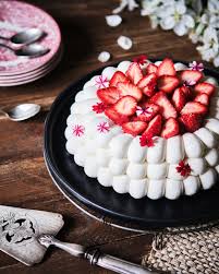 Сборка: В центр выпеченной меренги выложить бисквит, сверху выложить конфи. Отсадить крем шантильи и украсить ягодами и цветами.
